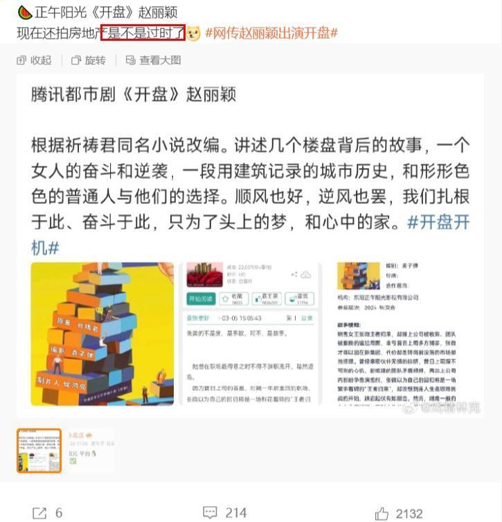 各位读者,看到网上传出赵丽颖要接拍《开盘》的消息后,你们期待这部剧吗?对于赵丽颖来说,她确实非常适合。